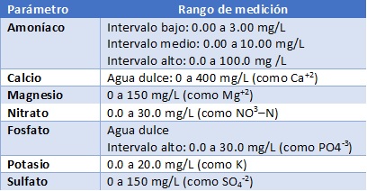 El HI83325 se suministra con celdas y tapas (4 unidades), paño para limpiar las celdas, cable USB a micro USB, adaptador de corriente y manual de instrucciones.